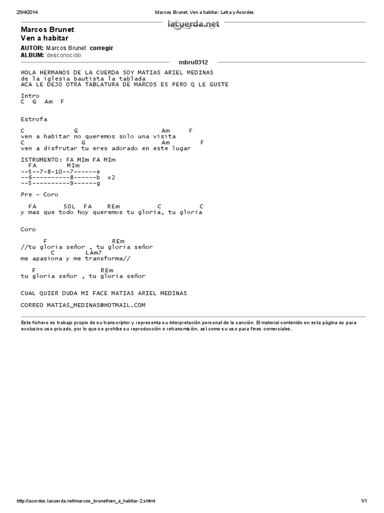 Digno Marcos Brunet Acordes / Y no hay nada que me enamore más nada que me apasione más solo tu presencia solo tu mirada me hace.