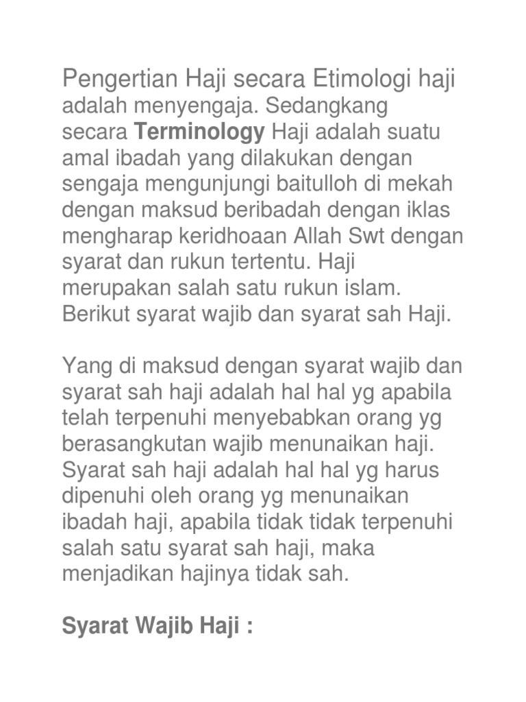 Merupakan Salah Satu Syarat Wajib Haji - Setiap orang yang belum memenuhi syarat tersebut belum wajib berhaji/umrah.