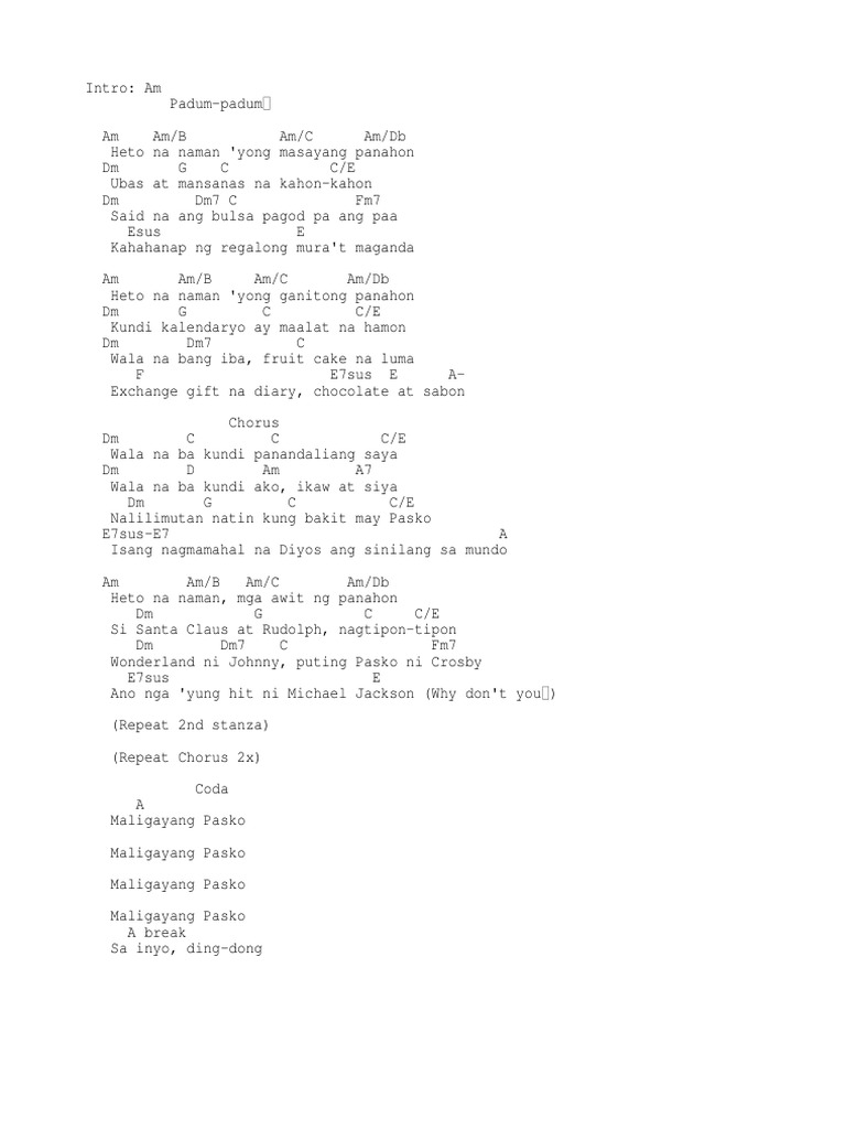 Pasko Na Naman Chords Key Of Am : Am7 bm am7 dmarahil ikaw ay nagtataka.