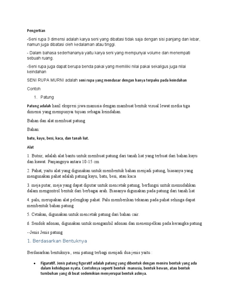 Pengertian Seni Patung Fungsi Jenis Bentuk Contoh Dan Teknik Membuatnya Pengertian Apapun Kelebihan yang membuat banyak orang gemar memakai bahan ini adalah proses pembuatan yang mudah dan cenderung lebih terjangkau dari pada bahan lainnya.