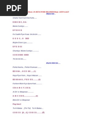 Pehla Nasha Piano Sheet Music - All keys denote the letter notes so that its easy for.
