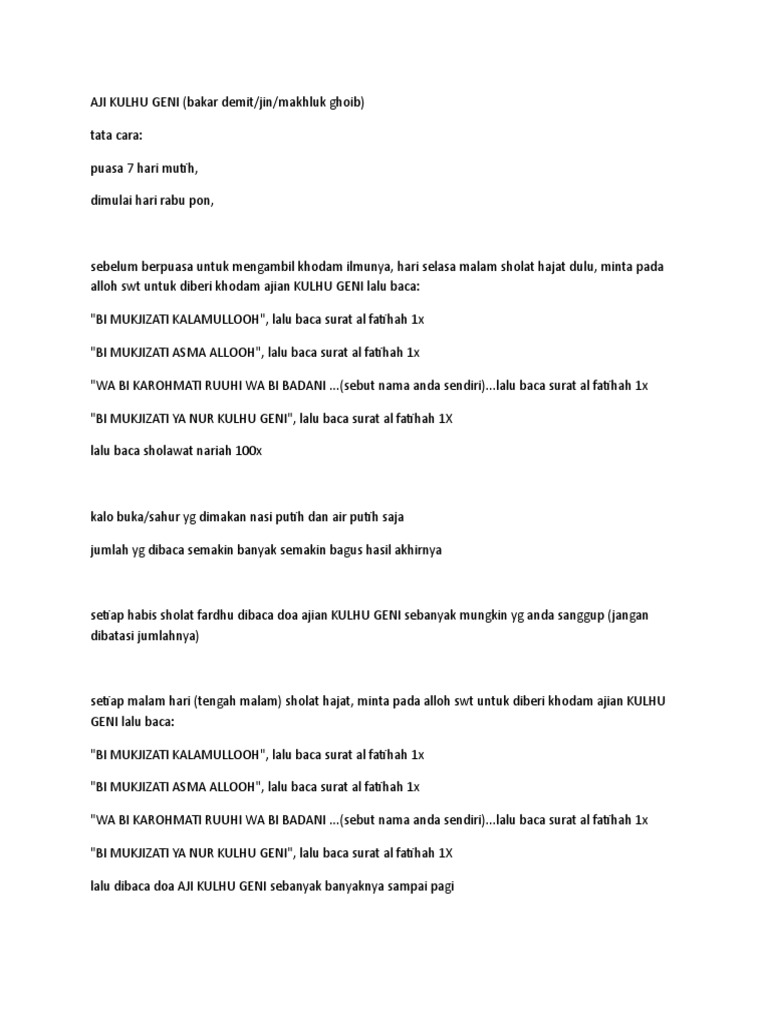 Tulisan Kulhu Geni / Kulhu geni, kulhu sungsang dan kulhu derga balek jika dbaca maka org yg membaca itu murtad langsung.