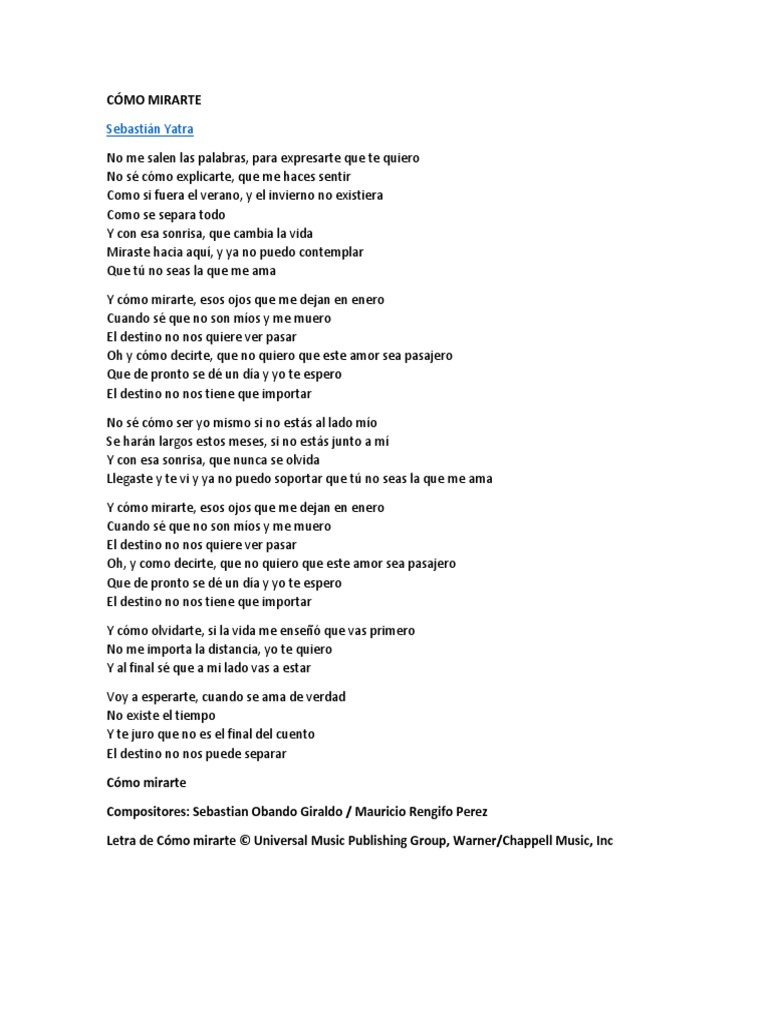 Y Como Mirarte Letra Completa / Letra y acordes de como mirarte.